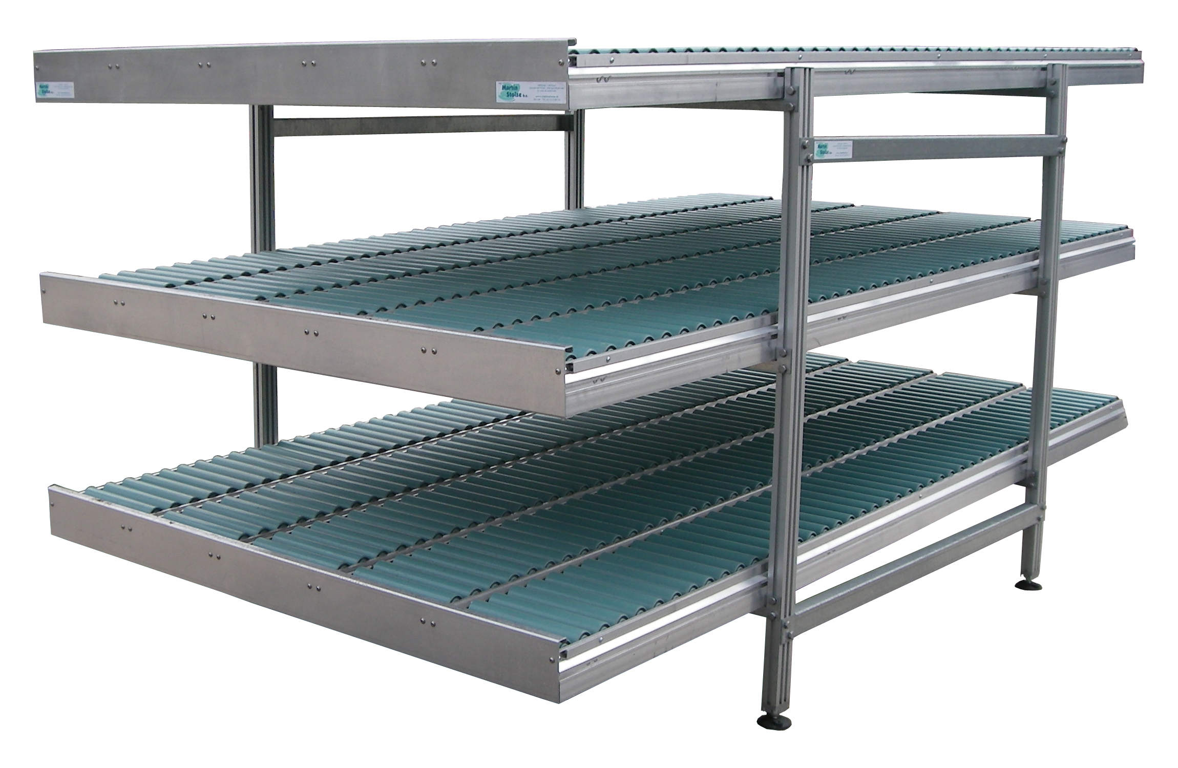 Zum Puffern und reibungslosen Weiterbefördern von Produkten können Sie unsere Rollenbahnen nutzen. Wenn eine höhere Kapazität auf einer begrenzten Fläche benötigt wird, können Sie sich auch für einen mehrstöckigen Rollenbahnpuffer entscheiden.