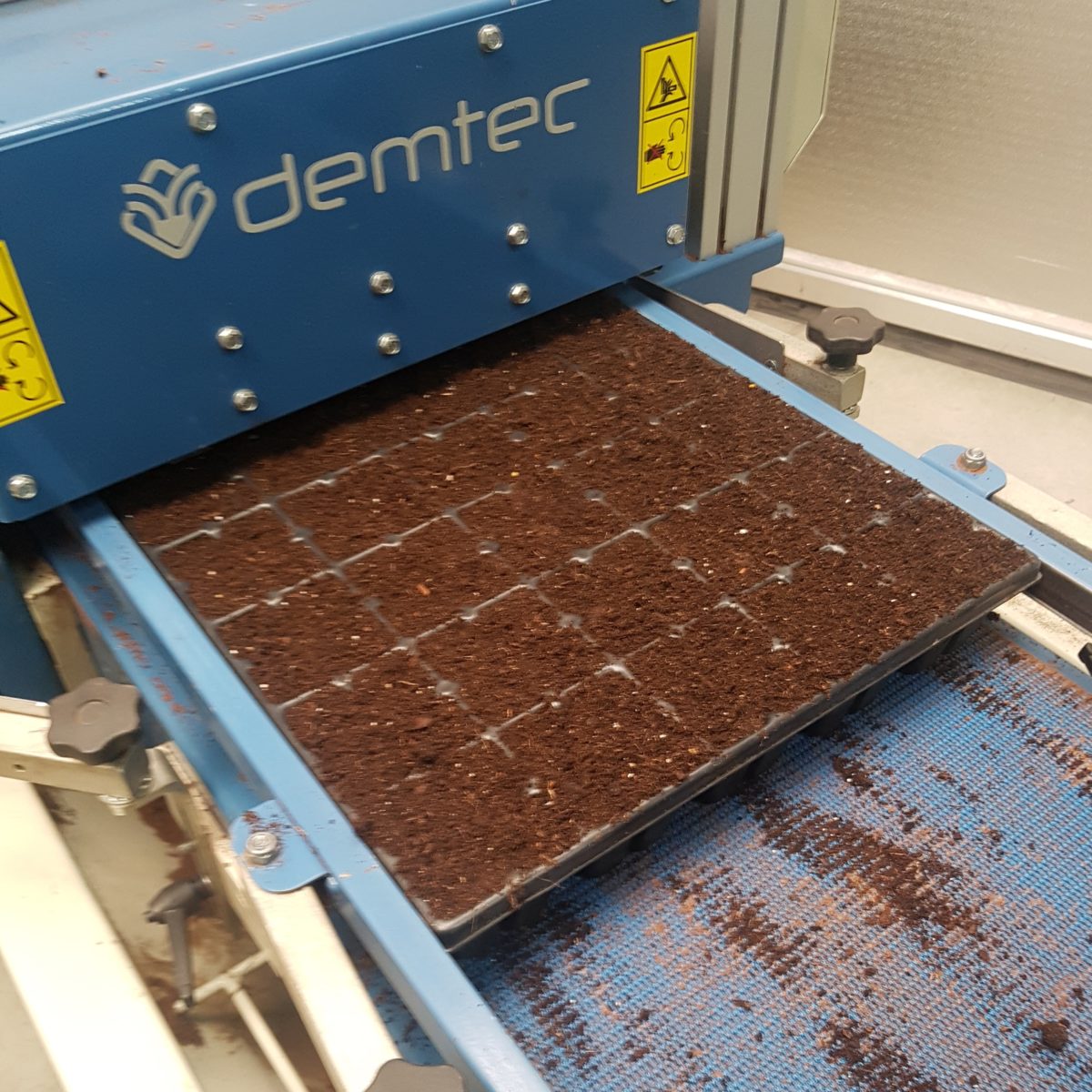 This tray filler has excellent filling features for both small volumes such as the nursery sowing and cuttings trays, and capacity for larger volumes (trays with a limited number of cells or open trays). The soil supply enables a high-volume capacity of up to 1,000 trays per hour for trays with a maximum width of 40cm. A height-adjustable powered brush gives them the finish that is required. A unique feature is the very high level of soil recovery; no spilled soil behind the machine and easy to fit into a tray filling line. What’s more, this concept enables containers to be filled that often do not rotate over a standard potting machine. Since its introduction, hundreds of these machines have been installed in the tree and vegetable sector strawberry cultivation, and fully automatic nursery sowing lines.